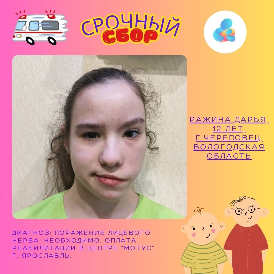Мы же с вами помогаем принцессам? Одной из них как раз сейчас очень нужна помощь... А зовут ее Даша. Множественное поражение черепных нервов. Поражение центральной нервной системы. Глиоз головного мозга. Поражение центральных ядер. Атрофия зрительных нервов. Сходящееся косоглазие и неврит лицевого нерва – вот эти диагнозы, изуродовавшие лицо девочки и сделавшие ее изгоем и объектом насмешек сверстников. Беда не приходит одна… В 2017 году, когда Даше было около шести лет, умерла ее мама. Потеря самого любимого человека стала сильнейшим стрессом у ребенка. И вот теперь они вдвоем с папой живут и бьются за Дашино здоровье. Шансы есть! И немалые. Первый курс восстановительного лечения прошел очень успешно. Сейчас мы открыли сбор на второй блок реабилитационных мероприятий и очень надеемся на вашу поддержку! Ведь каждая девочка - принцесса и хочет жить и радоваться жизни, улыбаться, быть счастливой и, конечно же, любить... https://stranadetyam.ru/campaign/razhina-darya-12-let-g-cherepov