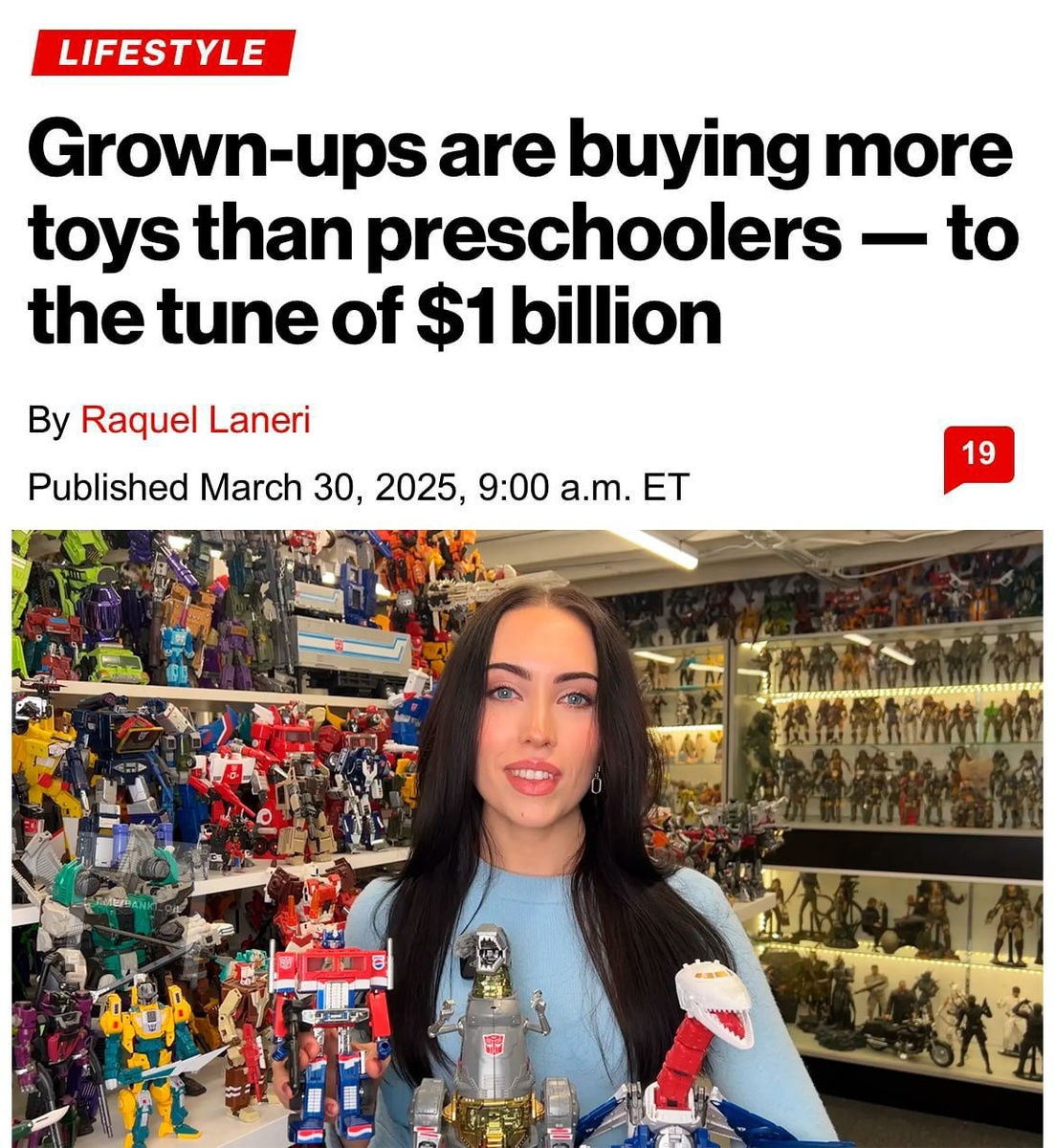 Взрослые массово скупают Lego в попытке справиться со стрессом. Люди подсели на детские развлечения ещё во время пандемии, но после неё спрос всё равно продолжил расти. В результате Lego и Hasbro срочно начали выпускать игры 18+, так как 30% их продаж теперь приходится на взрослую аудиторию. Самыми популярными у взрослых являются наборы для моделирования, лепки из глины и рисования, а также коллекционные карточки, фигурки и конструкторы Lego.