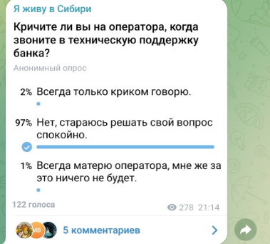 На это странное высказывание я решила создать опрос в телеграмме, выясняя как часто люди кричат на операторов, вот что получилось: