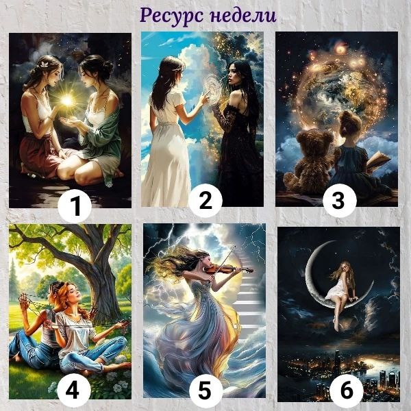Перед вами 6 картинок. Выберете ТОЛЬКО ОДНУ картинку. Выбирайте душой. Просто ту, которая вам больше всего нравится. Ту, которая вызывает у вас самый яркий отклик.
