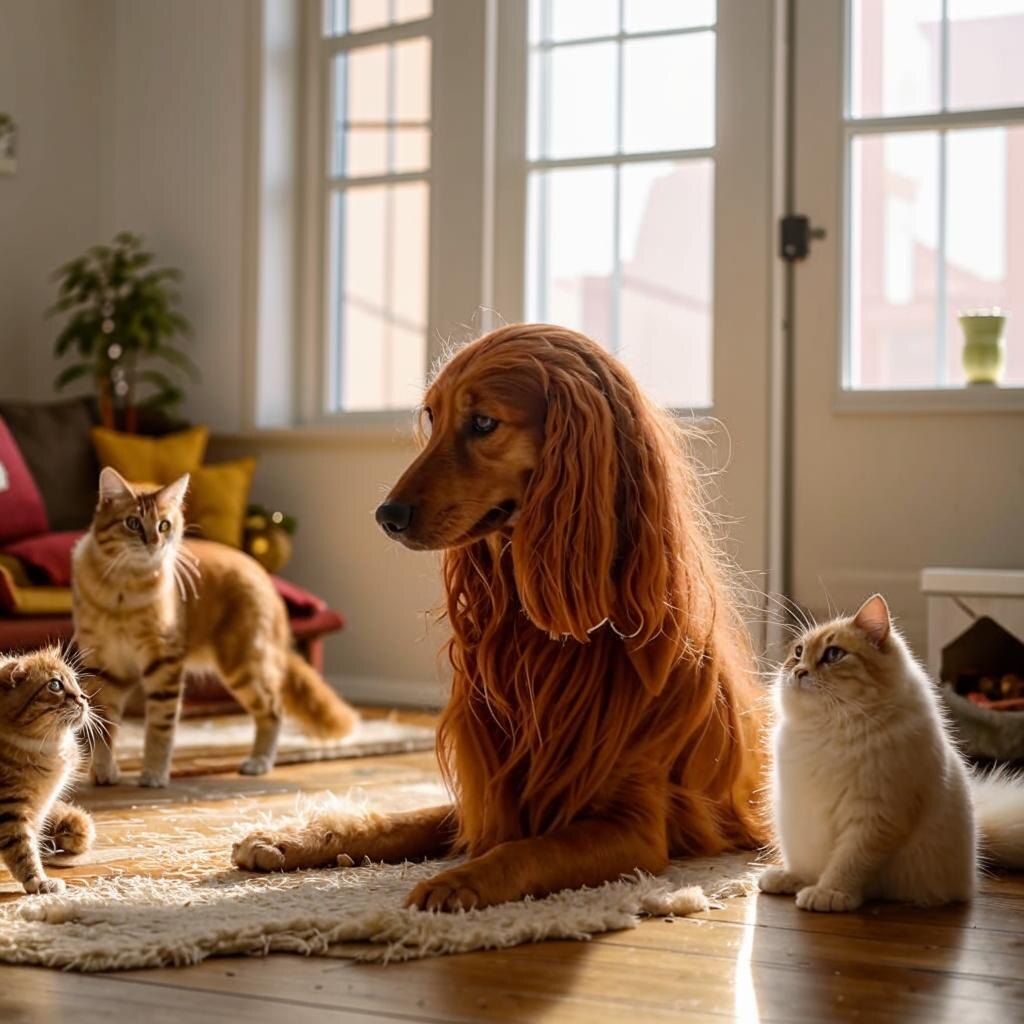 Кошки восторга не разделяли. Все трое застыли в прихожей, распушив хвосты и выгнув спины. А борзая стояла неподвижно, даже не глядя в их сторону — будто понимала, как важно сейчас сохранять дипломатичное спокойствие.