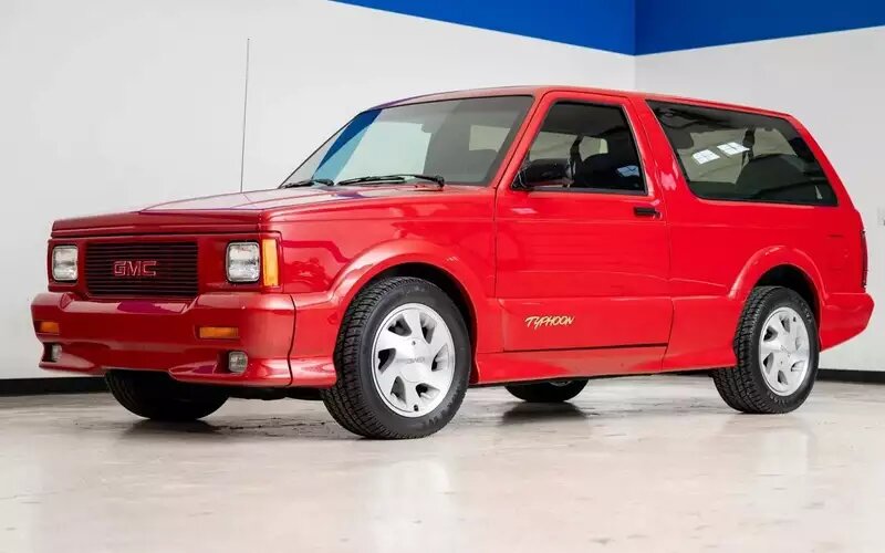 На одном из американских онлайн-аукционов внедорожник GMC Typhoon 1993 года продали за 226 000 долларов, что примерно соответствует 19 млн рублей. Этих денег в Штатах с лихвой хватит на новый Porsche 911 GT3 или, если ближе к теме, 530-сильный Range Rover в максималке (да и в принципе почти любой новый автомобиль), но кто-то выложил эти деньги именно за 32-летний GMC. Отчасти так произошло потому, что GMC Typhoon – машина довольно редкая. За два года, что шел выпуск, GMC сделала всего 4697 «Тайфунов», и только 345 из них были окрашены в такой красный цвет. Забавно, что по сути это пикап GMC Syclone, который и сам по себе был хорош со своим 4,3-литровым V6 с турбонаддувом на 280 л.с. и 475 Нм. Ничего не поменяв под капотом, разработчики Typhoon добавили заднюю адаптивную подвеску (!) и закрыли грузовой отсек элегантным «колпаком». В результате 4-ступенчатый автомат переводил всю уйму крутящего момента на четыре колеса таким образом, что до сотни Typhoon пулял за 5,3 секунды. С такими по