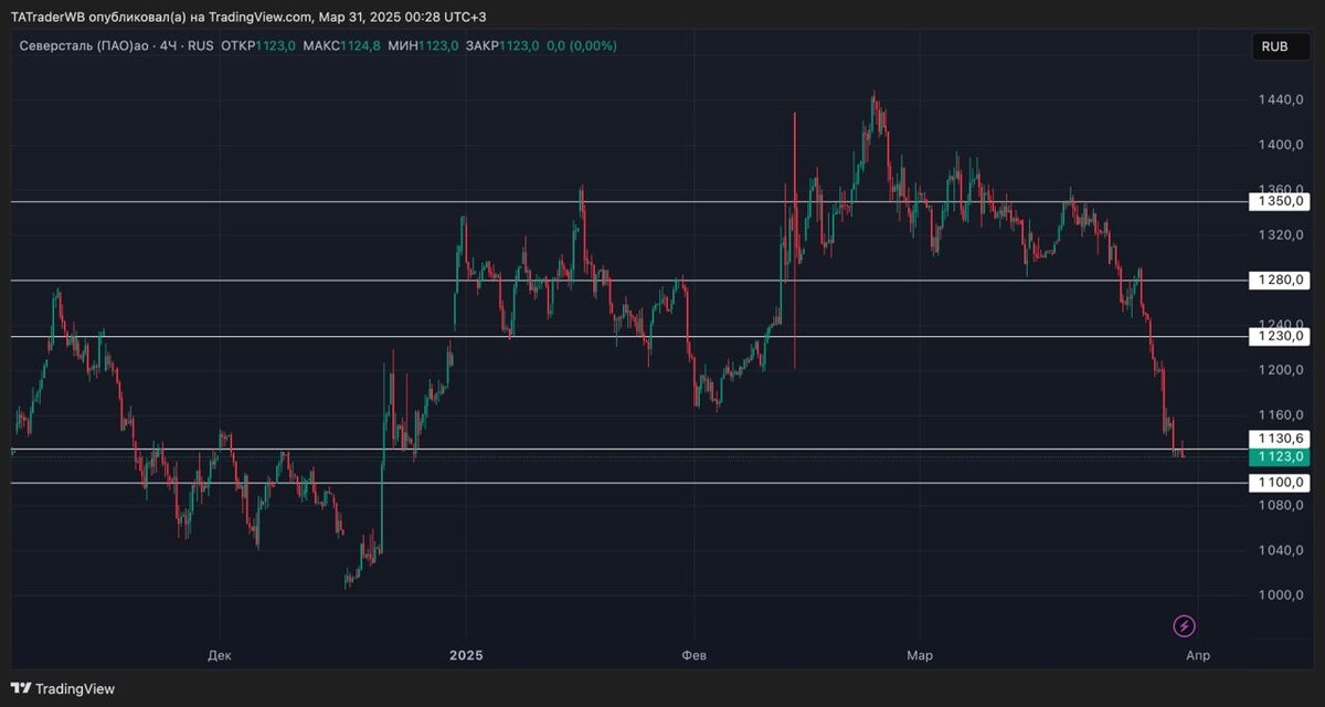 😱 ВСЕ СЛИЛИ!!! УЖАС!!! 🔽 Итак выходную сессию мягко говоря активно сливали, да так, что открытие индекса планируется 2930 - 2940. Хотя буквально в пятницу, Мы успешно лонговали от 3000... Так как сегодня открытие будет с большим гэпом вниз, а индекс находится в сильнейшей перепроданности, смотреть шорты ТОЧНО не буду. Работать сегодня буду только от лонга, от сильных уровней поддержек. Например: $CHMF 🚀 Планирую присмотреть лонг на отскок от 1100. (Вход возможен в диапазоне 1100 - 1103) ❗️ Стоп поставлю 0,7%. Тейк +1,4% - 2,1%. При достижении +0,7% поставлю стоп в без убыток. Желательно, чтобы акция пришла первичным движением к уровню поддержки! НЕ призыв к действию! Больше идей в Базе. ВНИМАНИЕ!!! Это условия торговли, то есть ЕСЛИ Северсталь придет к уровню, зайду. НЕ придет, НЕ зайду!!! Могут выйти новости, это остается доп риском и это НЕВОЗМОЖНО спрогнозировать! Если откроется ниже уровня, пропущу. Всем отличного понедельника!🤝