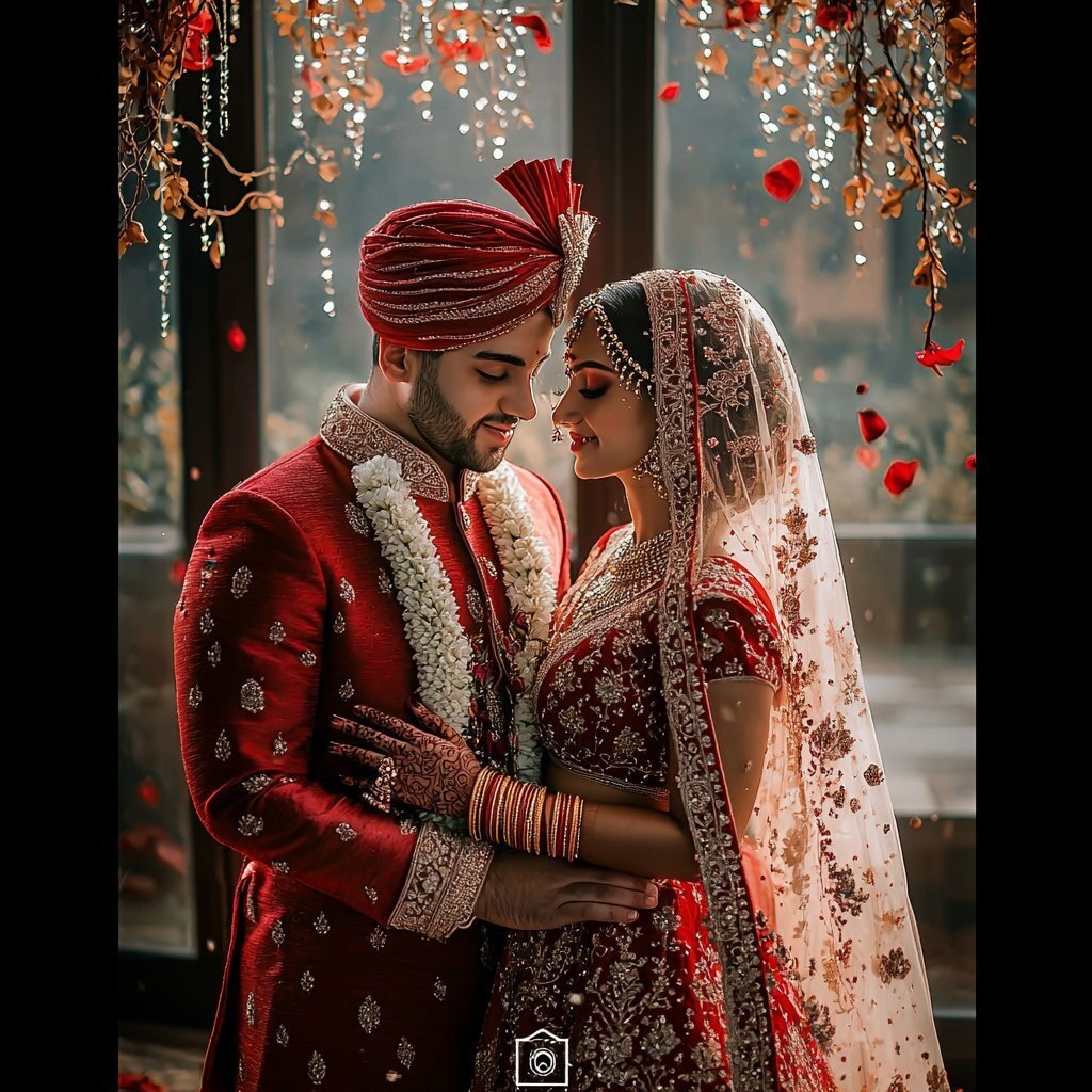 Создано на основе запроса: turn the image to hd animation hyper realistic bride and groom wearing indian attirr without changing anything from original picture