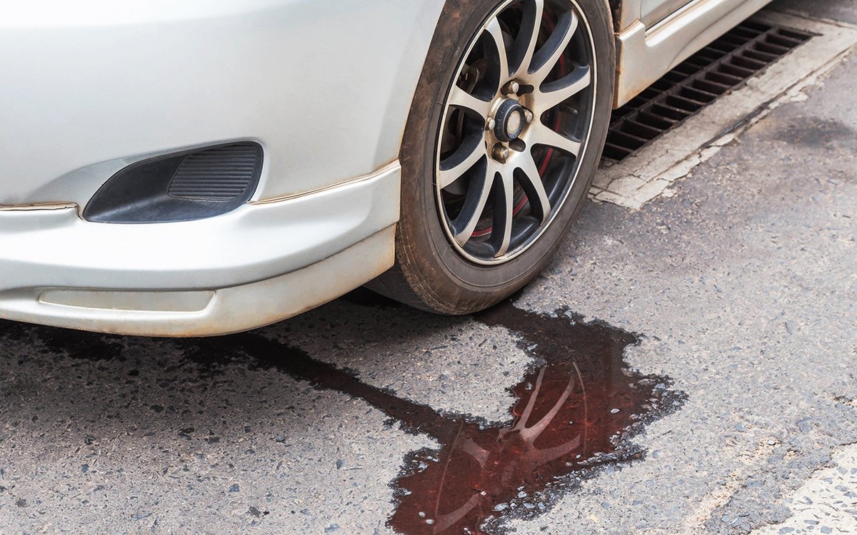 Жидкость имеет желтоватый оттенок и маслянистую текстуру. Пятна появляются под колесами или возле суппортов. Педаль тормоза становится «ватной», а тормозной путь увеличивается.