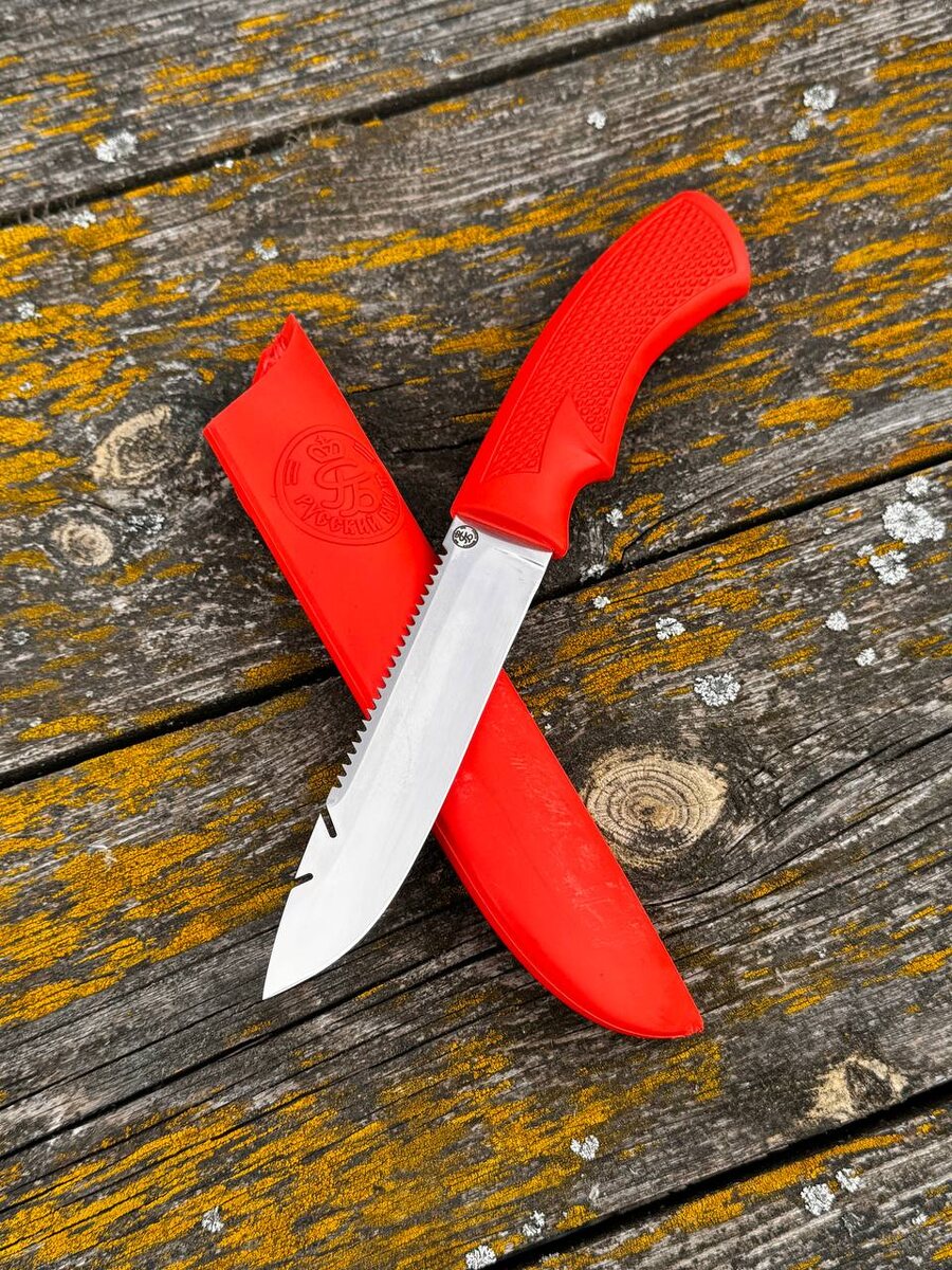 В наличии нож Рыбацкий-5 из стали 95Х18 ✅ Цена 5 000 рублей Данная модель разработана Масленниковым В.С. и выпускается на предприятии с 1994 г. Предназначен нож исключительно для рыбаков. Он имеет экстра́ктор для вытаскивания крючков и блесен из пасти крупной рыбы, а так же насечку для чистки чешуи. В 2006 г. внесены изменения в конструкцию ножа: изменена насечка на лезвии. Если раньше им можно было чистить рыбу только с крупной чешуей, то сейчас можно чистить любую рыбу, вплоть до окуня и судака. Также она является отличной пилой для резки различных канатов и веревок. Модель рыбацкий-5 выпускается с 2018 года, имеет рукоять из резинопластика. У материала высокий коэффициент трения, за счёт чего при работе с ножом рука абсолютно не скользит. Хвостовик цельный и идёт до конца рукояти. Ножны выполнены из пищевого резинопластика, имеют подвес в виде карабина. 📩 Оформить заказ можно здесь @rusbulatru Либо в WhatsApp по номеру 8987-557-10-54
