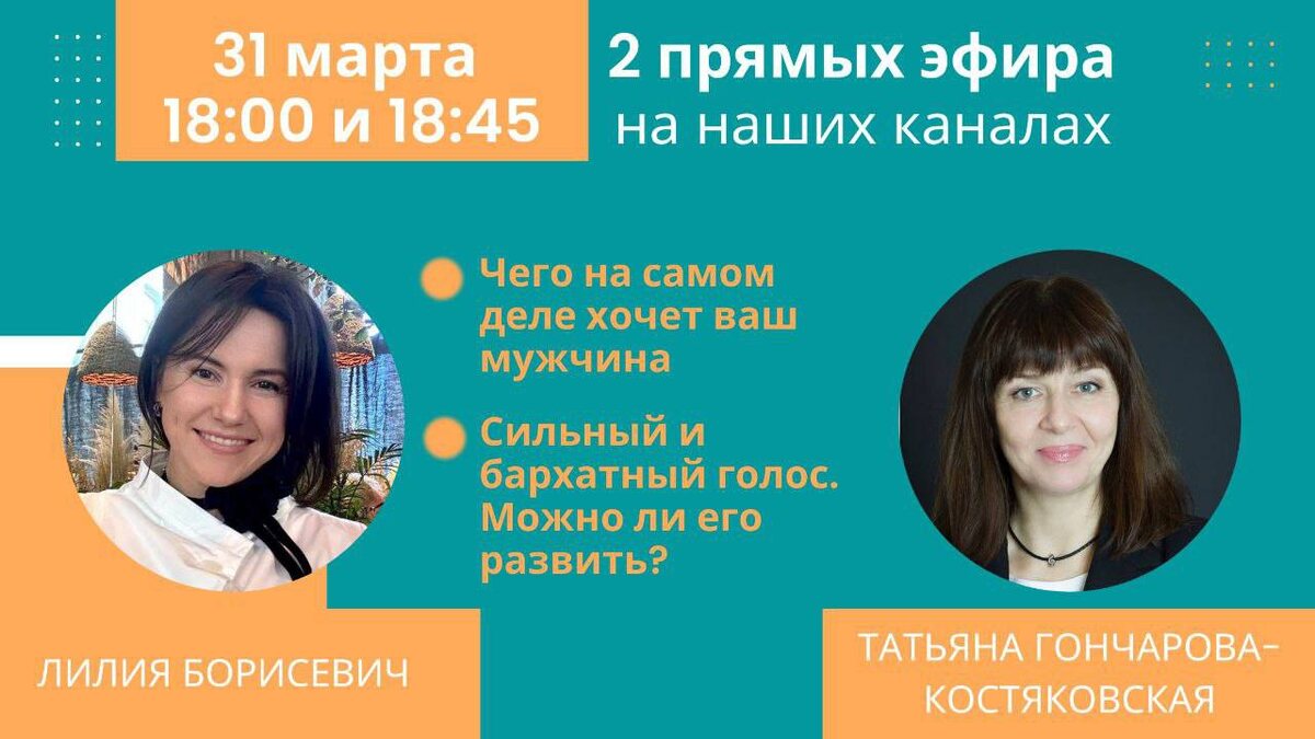 Дорогие друзья, 31 марта состоится 2 прямых эфира!