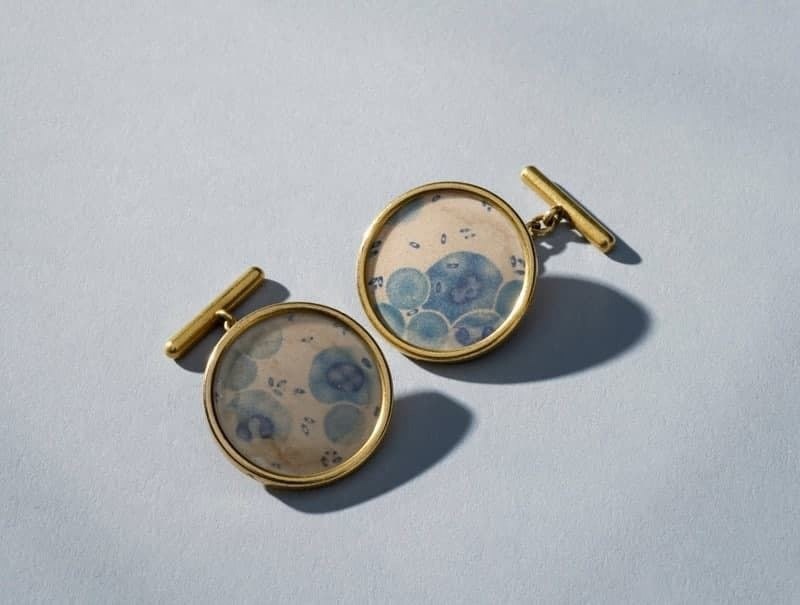 Запонки с изображением бактерий — возбудителей чумы, предположительно изготовленные мастерской Фаберже