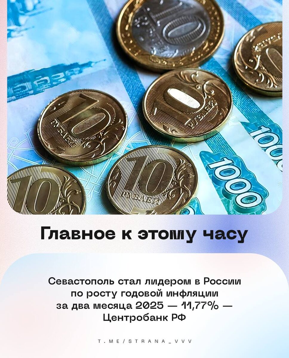 🔹 Севастополь стал лидером в России по росту годовой инфляции за два месяца 2025 — 11,77% — Центробанк РФ.