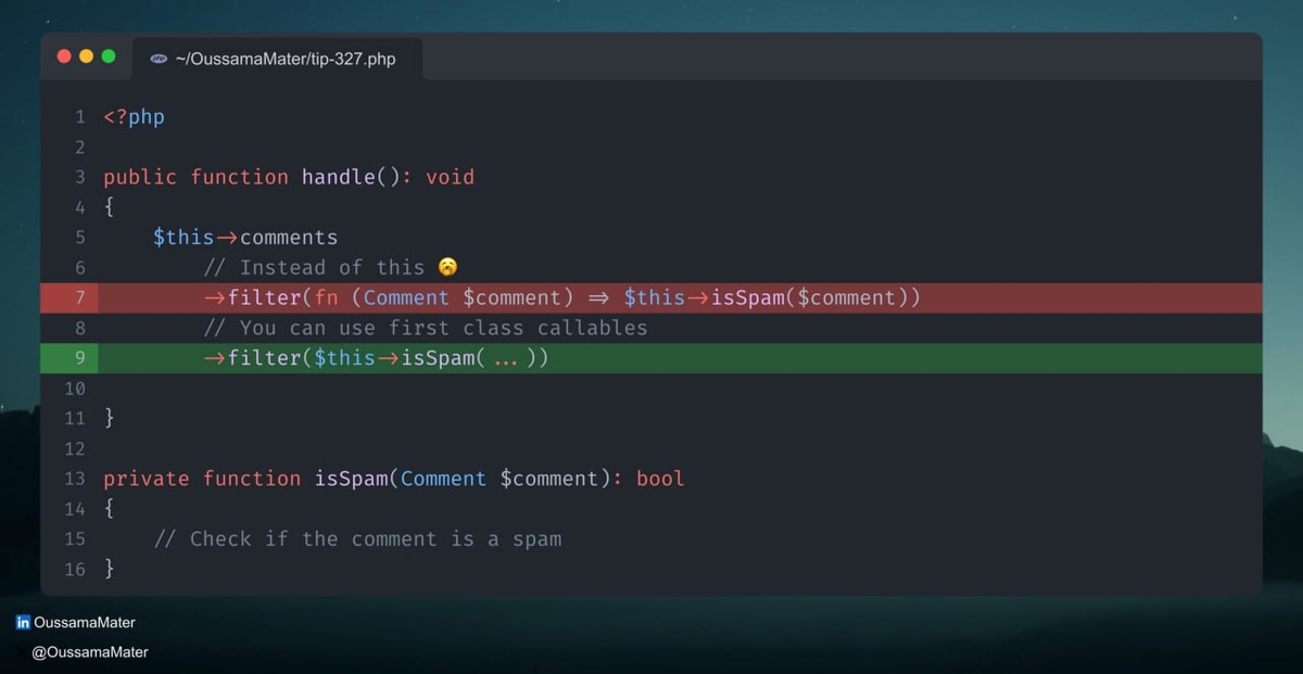 💡 Совет по PHP: `Callable` объекты первого класса В PHP 8.1 появились callable объекты первого класса. Они могут добавлять синтаксический сахар, особенно при работе с коллекциями Laravel, где часто используются замыкания 🚀. 📱 @dev-notes.ru #PHP #tips