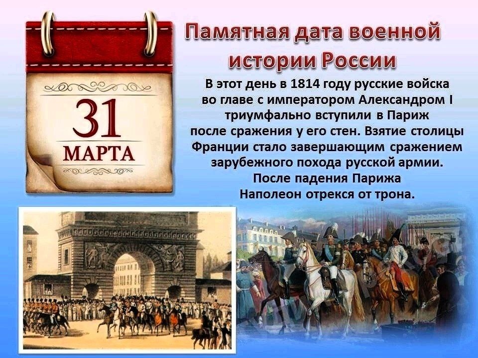 Штурм Парижа (фр. Bataille de Paris) — завершающее сражение войны Шестой коалиции, после которого Франция капитулировала, а император французов Наполеон Бонапарт отрекся от трона. 18 (30) марта 1814 года союзные армии фельдмаршалов Блюхера и Шварценберга атаковали и после ожесточённых боёв захватили подступы к Парижу. 31 марта в 2 часа ночи была подписана капитуляция Парижа, и город пал, прежде чем Наполеон успел перебросить свои войска для его спасения.
