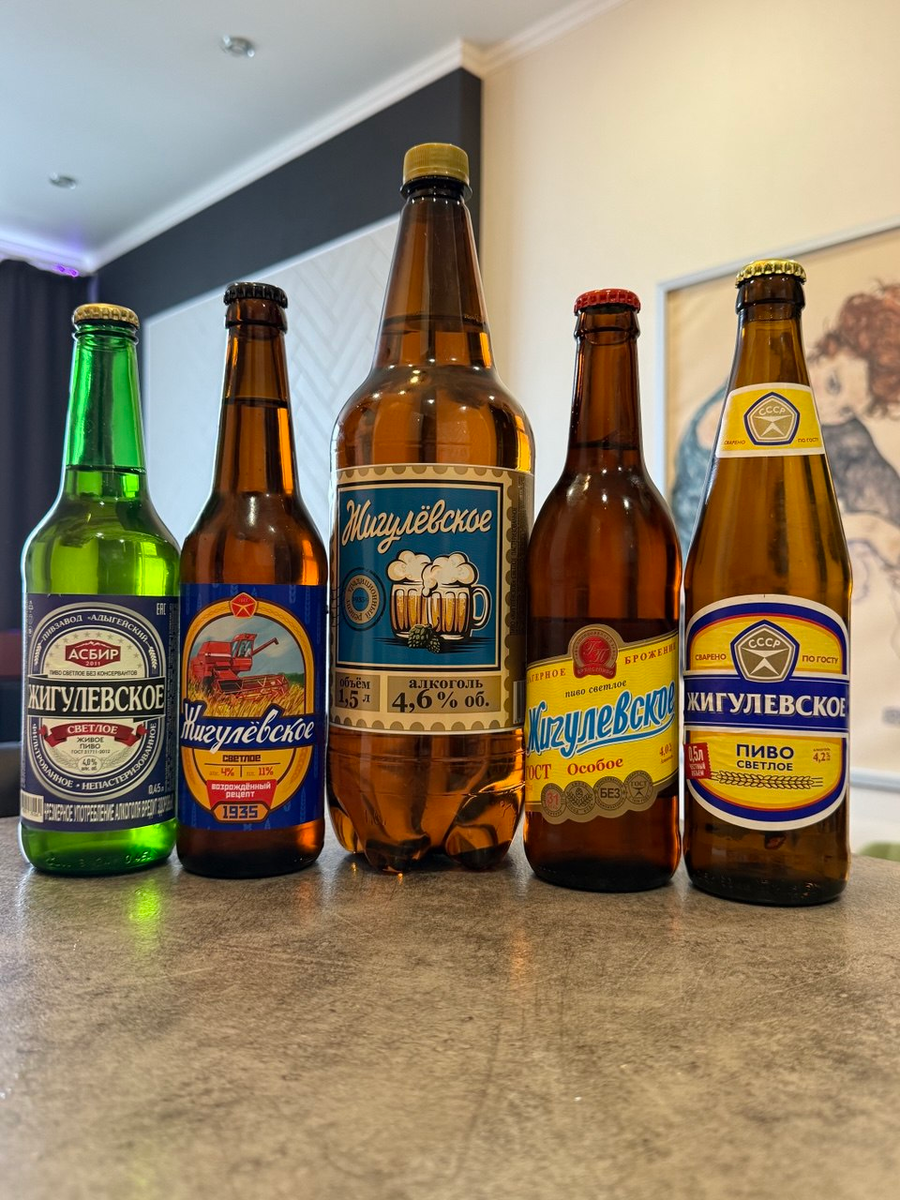 Всем привет! С вами Алкоманьяк, и сегодня мы прокатимся в прошлое — туда, где пиво пахло ностальгией, а ГОСТ был священен, как партбилет. А потом выясним, какое же из нынешнего "Жигулевского" пива можно назвать настоящим! Фишка: В СССР в пиво добавляли ячменный солод и хмель с Алтая. Никаких консервантов — только честный «соцреализм» в бокале! Согласно стандарту 3473-46: Собственно, я отправился в ближайший ко мне магазин, и приобрел все виды "Жигулевского", что смог найти, которых в итоге собралось аж 5 образцов. Итак, в мои руки попали "Жигулевские", вот они, слева направо: Начинаем с представителя р. Адыгея Состав неплохой, вода, солод ячменный и хмель. Крепость 4% об. ЭНС 11%. Внешний вид золотистый, карбонизация на высоком уровне, пенная шапка в наличии. Тут над составом поработали, сразу три вида солода, и обычный ячменный, и карамельный, и даже темный, а также вода и хмель. Крепость 4% об. Цвет - темно-карамельный, карбонизация очень сильна, пенная шапка массивна. Тут в составе