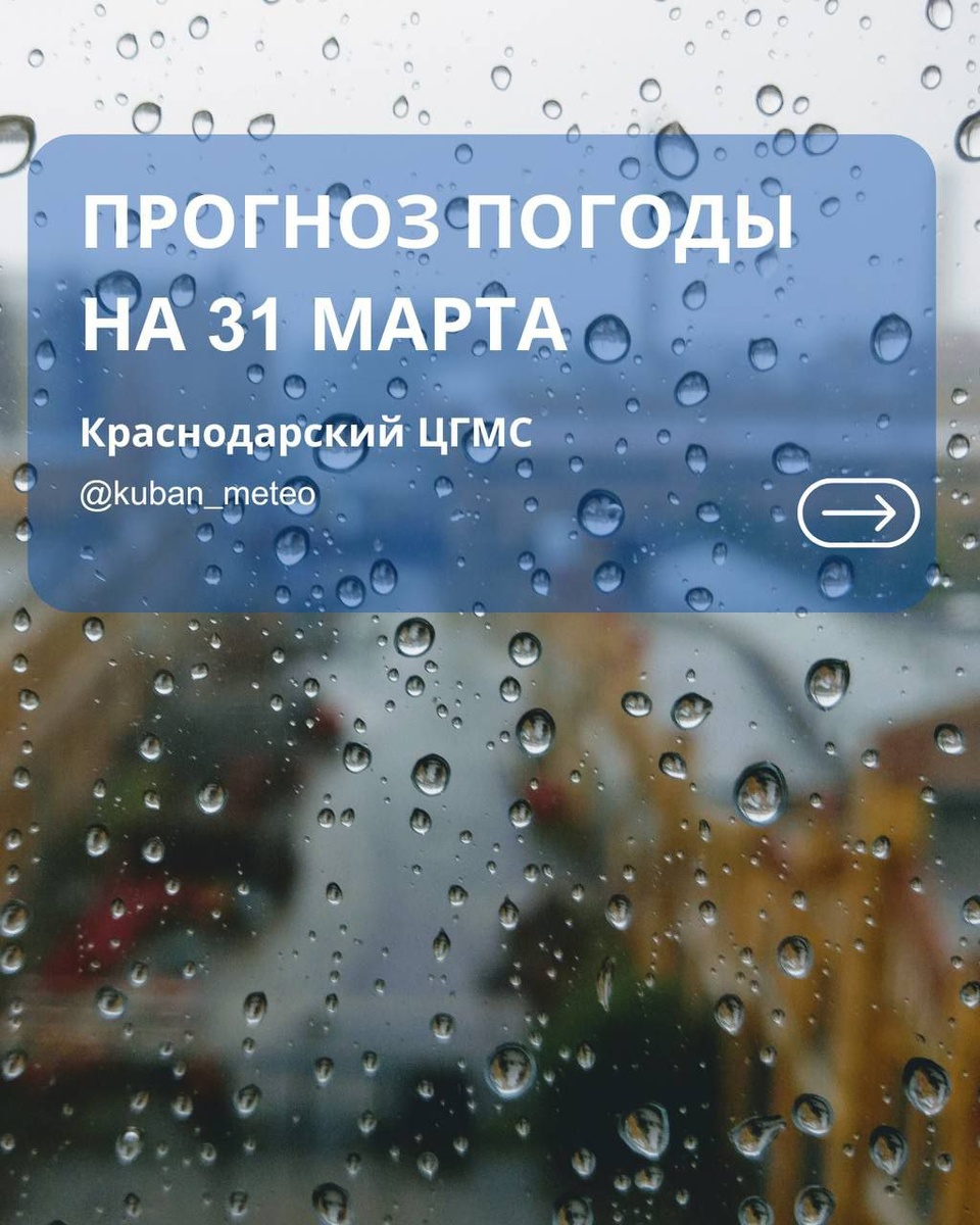 🌧️ Прогноз погоды в Краснодарском крае на 31 марта.