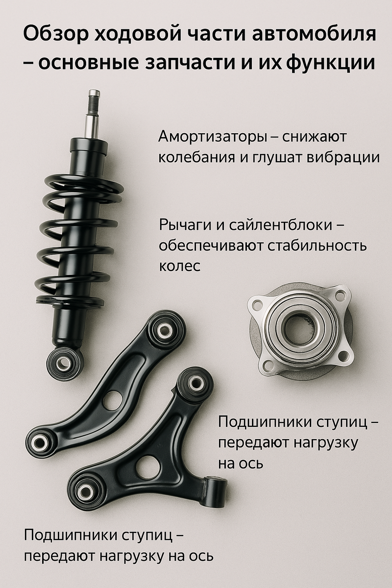🚗 Ходовая часть — это основа комфортной и безопасной езды. Именно она отвечает за устойчивость автомобиля на дороге, сглаживает неровности и передает крутящий момент на колеса. Если хотя бы одна деталь выходит из строя, водитель сразу замечает ухудшение управляемости и появление посторонних шумов. Сегодня мы рассмотрим ключевые элементы ходовой части, их функции и признаки износа. 1️⃣ Амортизаторы — снижают колебания и гасят вибрации