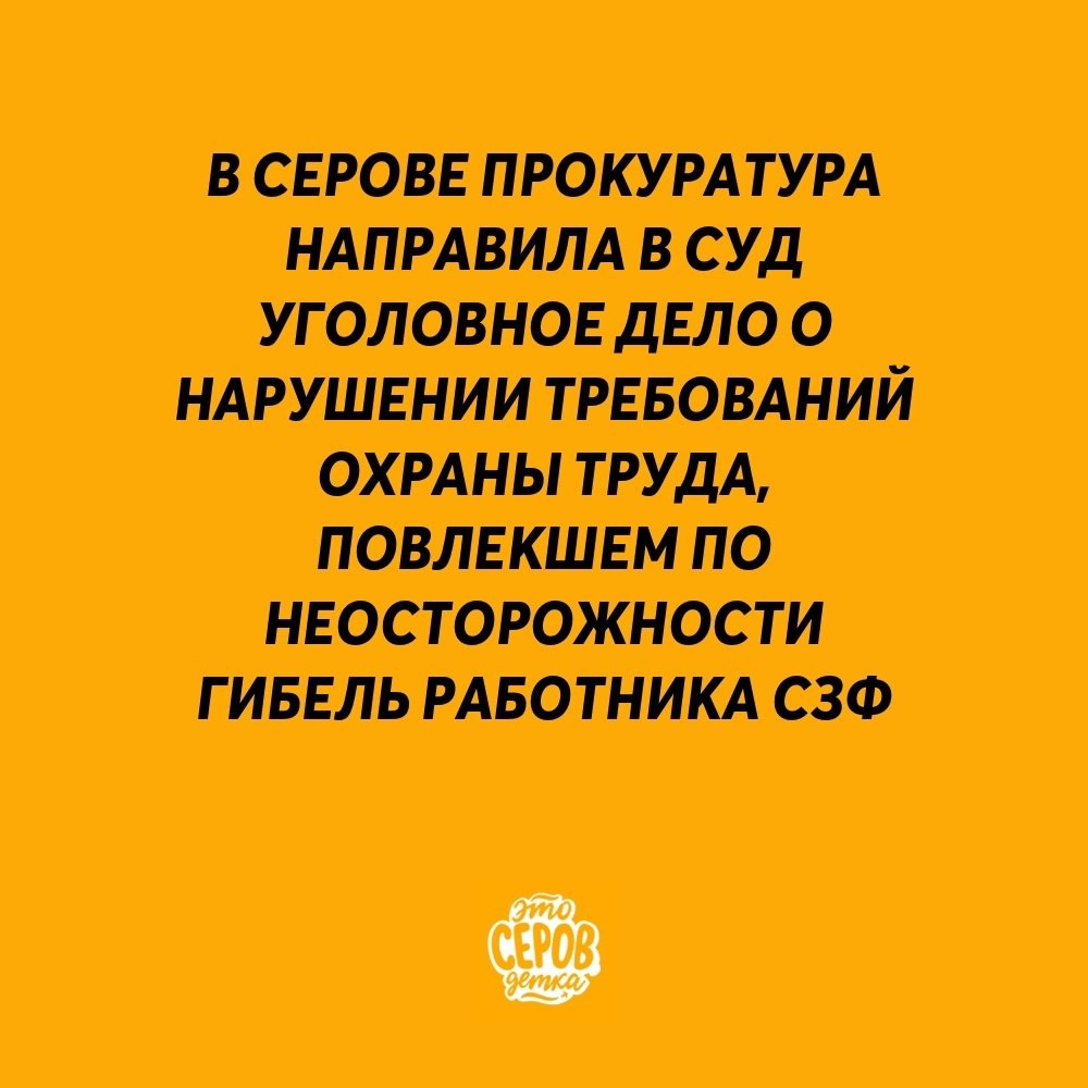 🏭 В Серове прокуратура направила в суд уголовное дело о нарушении требований охраны труда, повлекшем по неосторожности гибель работника