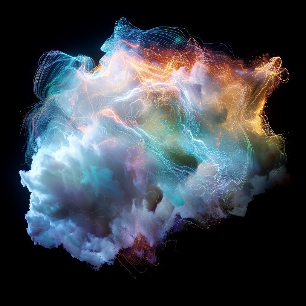 Создано на основе запроса: Imagine a dynamic, glowing cloud of energy, swirling with vibrant hues of blue, orange, and green. The cloud shifts and pulses, with electric currents running through it, creating a sense of constant movement and transformation. The energy cloud symbolizes the flow of clean, renewable power, radiating a futuristic, otherworldly aura