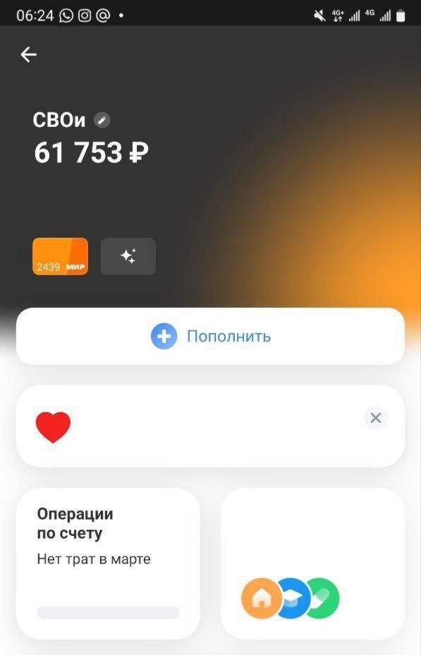 Отчёт!🫡 На карте: 61753 Т- банк: 61753 Сбер: 0 Текущий сбор: 20753 - общий сбор для подразделения Мухи-2 и Ко. Оплата : 4000 - бочки для подразделения Весёлого и Ко. 6336 - скобы для подразделения Весёлого и Ко. 1870 - насос для подразделения Весёлого и Ко. 5600 - плёнка для подразделения Весёлого и Ко. Резерв: 41000 - ретранслятора для подразделения Адама и Ко. Дорогие СВОи, огромное спасибо вам за помощь! Это очень важно! 💓💓💓💓💓💓💓💓💓💓💓 Время выгрузки данных по переводам 06:24 утра по Мск.