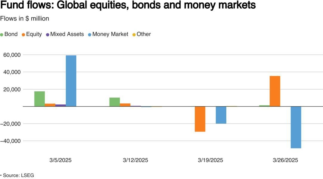 Мировые фонды акций получили сильный приток благодаря первоначальному оптимизму вокруг пошлин