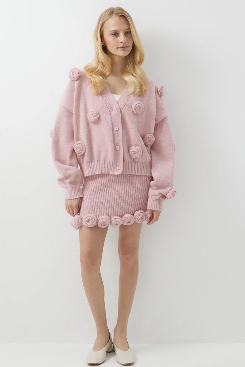 Кардиган прекрасно комбинируется с различными моделями юбок — от мини до макси.