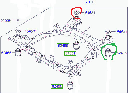 Продаю полный набор запчастей для замены сайлент блоков подрамника Santa fe classic дизель. Комплект для замены опор подрамника (4 шт): 62415-26000 сайлентблок 62494-3В000 отбойник 62496-3В000 кольцо стопорное Всем удачи на дорогах.