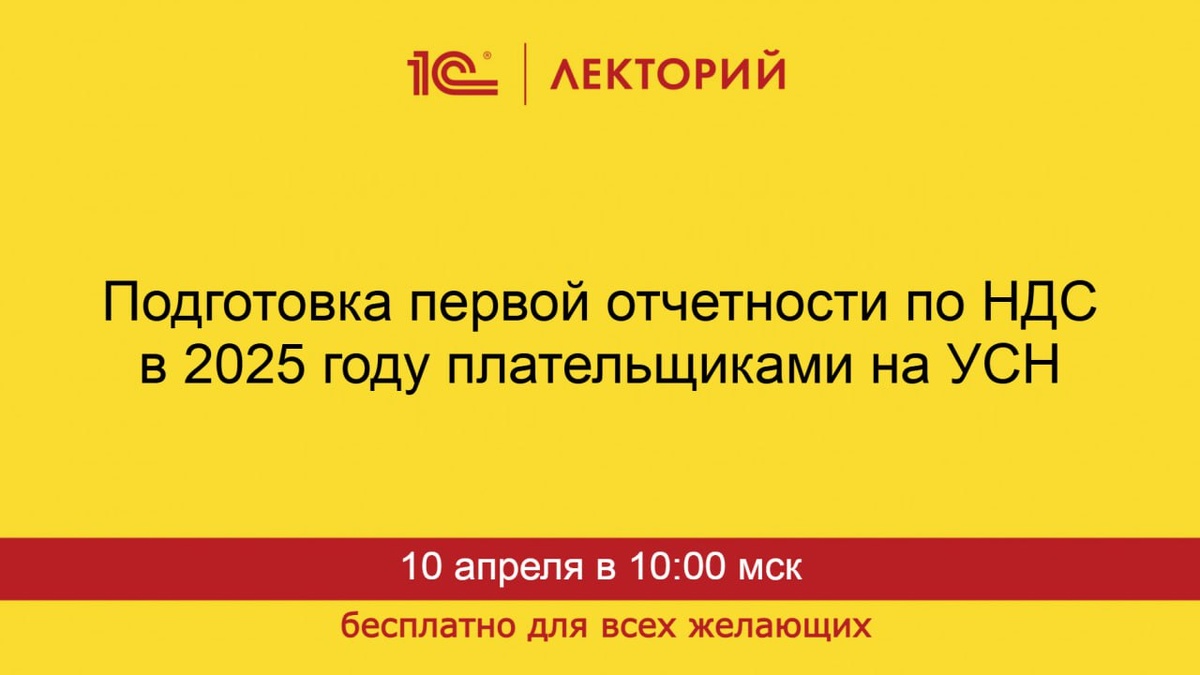 Подготовка первой отчетности по НДС в 2025 году плательщиками на УСН В ходе лекции Семенов Сергей Александрович, начальник отдела налога на добавленную стоимость Управления налогообложения юридических лиц ФНС России, расскажет о применении НДС налогоплательщиками на УСН: 🟠различных категориях налогоплательщиков, особенности применения ими НДС; 🟠что учесть при выборе налоговой ставки НДС, плюсы и минусы пониженных ставок НДС; 🟠особенности перехода на уплату НДС с 01.01.25 (вычеты и восстановление НДС); 🟠форме и порядке представления отчетности и пояснений к отчетности; 🟠особенности применения НДС при изменении налоговых ставок и другое; 🟠ответит на вопросы слушателей. ☝️ Зарегистрироваться на лекцию и задать вопросы лектору 🚨Подписывайтесь на @lector_1c