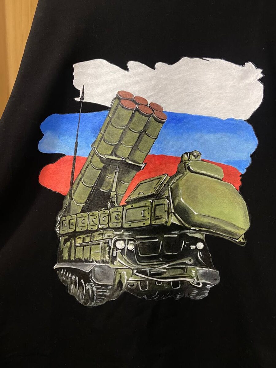 Заказы на роспись нынче приходят под стать времени. Нужно нарисовать на футболке российский зенитный ракетный комплекс..Бук-М3. Сможете? Скучаю по тем временам, когда люди хотели на футболках: герб программистов, мужика-полу-киборга и «всех моих кошек вместе пожалуйста..», и даже когда заказали 25 одинаковых футболок с надписью «Я бы обнял тебя, но карантин…» Эх, какое время было.. 🥺