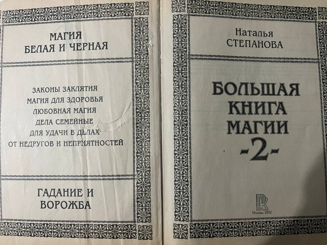 Недавно наткнулся у бабушки на книжных полках на занимательную книгу — "Большая книга магии" Натальи Степановой. Раньше её не замечал, а тут вдруг схватил и начал жадно листать. И знаете, очень увлекательная книга. Вот что меня в ней удивило и понравилось: 1. Это сборник нескольких изданий — с 7-го по 10-е. В каждой книге есть раздел с письмами от читателей. Интересно, что целители вроде Натальи Степановой — это как психологи или священники. Люди приходят к ним с самыми сокровенными историями. Например, есть письмо-исповедь от женщины, которая, работая на почте, вскрывала письма в поисках денег — жила одна с двумя детьми, а зарплаты не хватало. Или письмо президента банка, который продал душу дьяволу. Или история про золотые зубы, приведшие к разводу. И много других интересных эзотерических историй в духе раннего Пелевина. 2. Содержание книги. Темы настолько разные, что это похоже на кладезь знаний. Вопросы которые волновали людей последние 100 лет. Большинство вопросов — про отношения