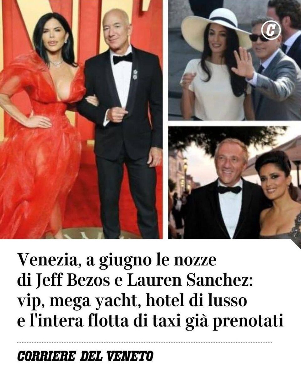 Венеция на несколько дней станет собственностью Джеффа Безоса На несколько дней Венеция окажется во власти миллиардера Джеффа Безоса и его будущей жены Лорен Санчес — пилота, писательницы, филантропа и журналистки. Основатель Amazon выбрал живописную Лагуну для празднования своей свадьбы в конце июня и, судя по всему, готов потратить на торжество баснословные суммы. Свадьба запланирована на 24 июня, и уже известно, что Безос с невестой арендовали сразу пять роскошных отелей, а также практически всю флотилию водных такси. Гостями праздника станут мировые знаменитости, которым предстоит перемещаться с одной фешенебельной террасы на другую.