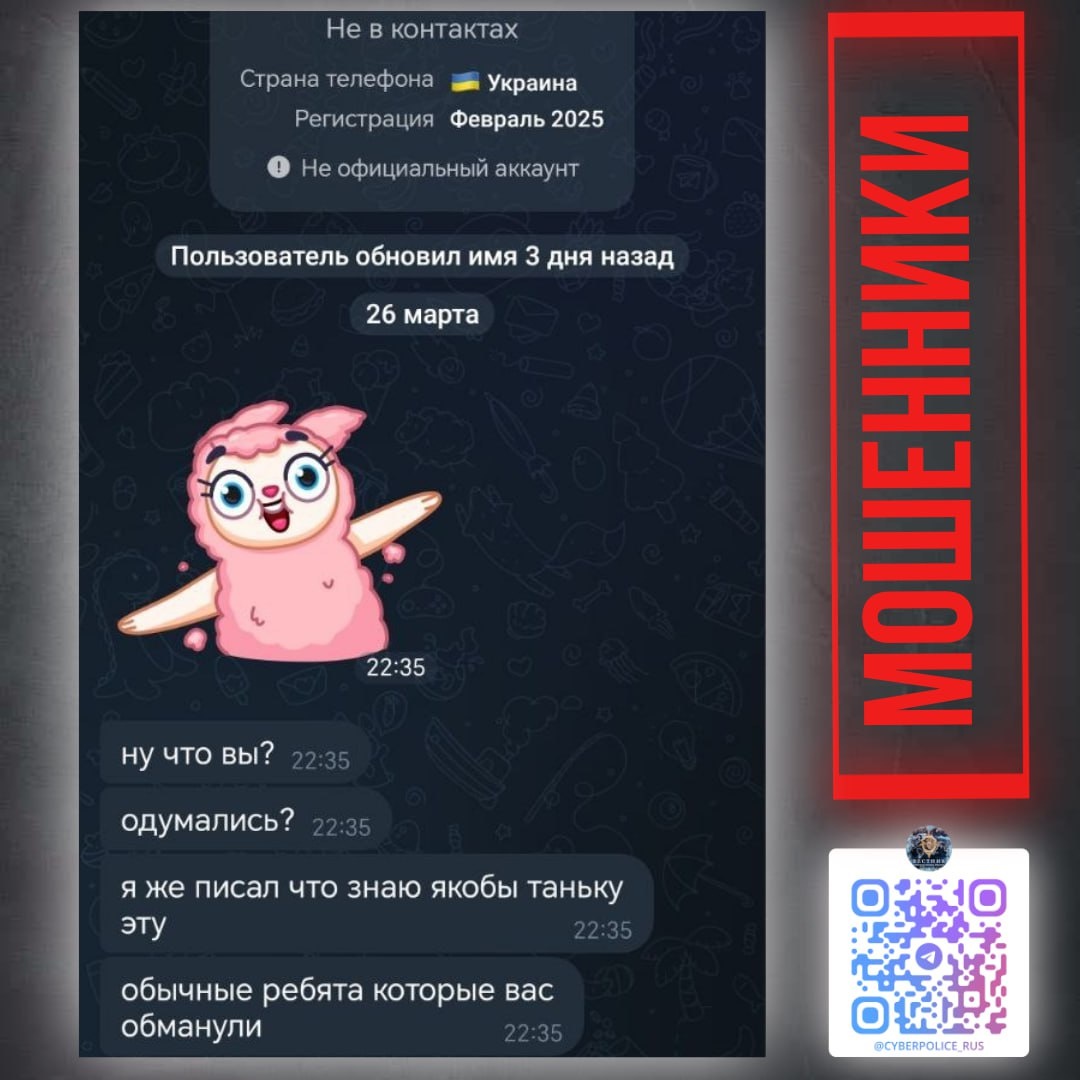 ❗️Злоумышленники активно "работают" в чатах, где граждане делятся своими историями о контактах с мошенниками.