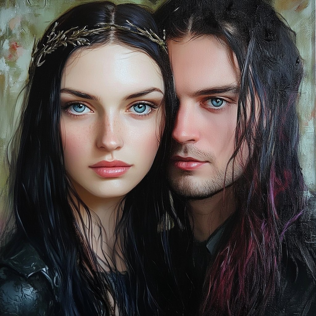 Создано на основе запроса: elven couple in the forest,elven couple standing together
