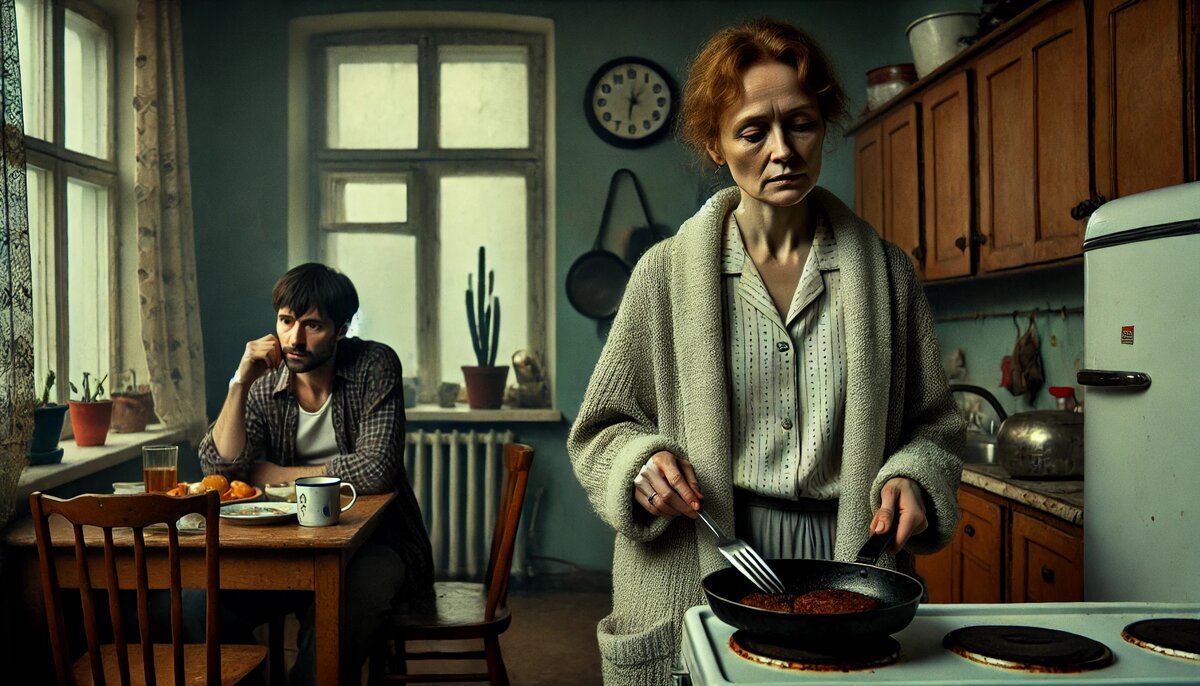 Ощущение было, будто всё вокруг превратилось в чёрно-белый кадр из советской телепередачи “Время”. Я хмуро глядела на подгоревшие котлеты и думала: “Ну, хоть можно срезать обугленную часть и не выбрасывать… или уже поздно?” Странно, как мозг цепляется за мелочи, когда происходит что-то по-настоящему страшное.