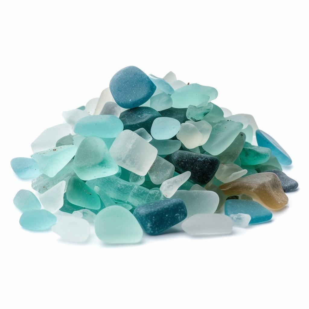 Создано на основе запроса: a pile of magical sea glass that has been enchanted by the power of the sea, cold colors, no background, high definition