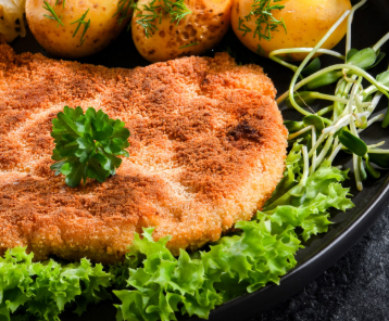 - Обваляйте каждую отбивную в муке, затем в яйце и в сухарях.
