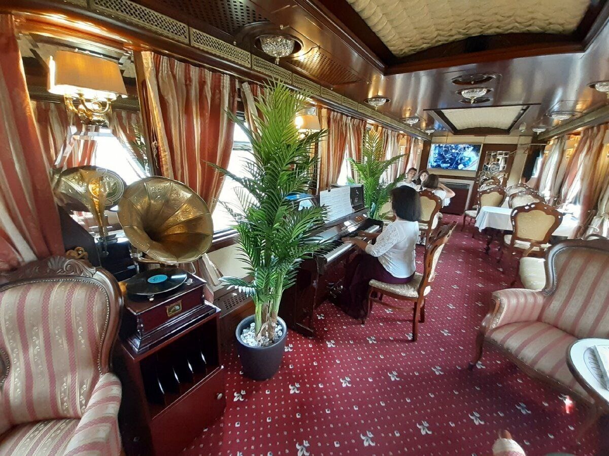 Если вы хотите окунуться в атмосферу прошлого и почувствовать себя пассажиром XIX века, «Рускеальский экспресс» — это то, что вам нужно. «Рускеальский экспресс» — единственный в России регулярный ретропоезд, который использует паровую тягу. Вагоны выполнены в стиле первого класса конца XIX века, с кожаными сиденьями, роскошной отделкой из древесины и черно-белыми фотографиями того времени. Для тех, кто ценит настоящий комфорт, есть вагон первого класса с четырьмя купе. Здесь можно насладиться мягкими диванами, интерьером в стиле театров императорской эпохи, шампанским и фруктами — идеальный выбор для романтического путешествия. Не забыли и о гастрономическом удовольствии: два вагона-ресторана предлагают блюда карельской кухни. В одном из них, оформленном в царском стиле, можно попробовать уху по-карельски или традиционные калитки. Сам поезд не менее впечатляющий — его возглавляет настоящий паровоз середины XX века, который привносит атмосферу былых времен в каждый момент путешествия. П