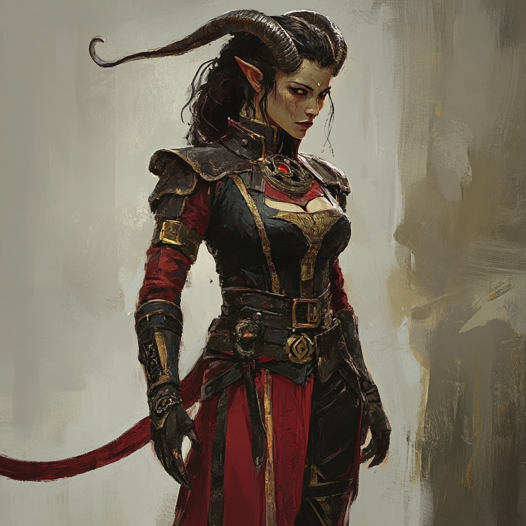 Создано на основе запроса: D&D character concept art, female cthonic tiefling artificer