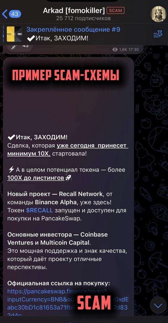 1. Honeypot-токены Можно купить, но нельзя продать токен (на DeFi-площадках). 2. Фейковые раздачи Просят отправить криптовалюту на адрес кошелька и обещают вернуть больше. 3. Фишинг и поддельные сайты Подделывают сайты бирж и кошельков для кражи приватных ключей. 4. Мошенничество с NFT На кошельки отправляют поддельные «ценные» NFT. 5. Ложные «службы поддержки» Представляются службой поддержки, пытаясь получить доступ к вашему кошельку. 6. Торговые боты в Telegram Особенно если требуется подключить ваш кошелек. 7. Сторонние сайты по «приумножению вашего капитала» Не ведитесь на этот банальный развод. Пользуйтесь централизованными биржами.