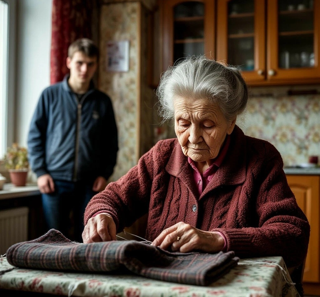 Внук поспешно стянул олимпийку, и я стала вынимать черные нитки.