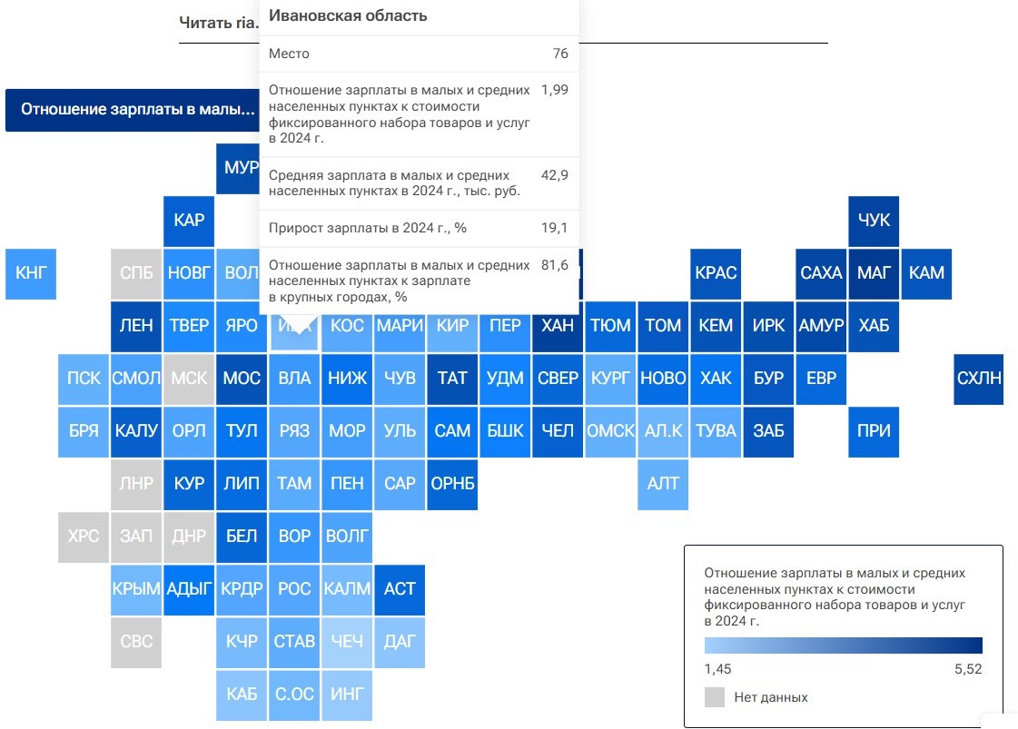 💸 Ивановская область заняла 76 место по зарплатам в небольших населенных пунктах