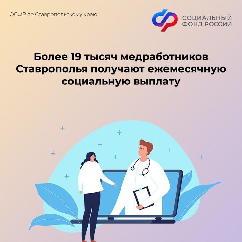 Отделение СФР по Ставропольскому краю осуществляет специальную социальную выплату 19 тысячам медицинских работников. С начала года на эти цели направлено свыше 689 миллионов рублей.