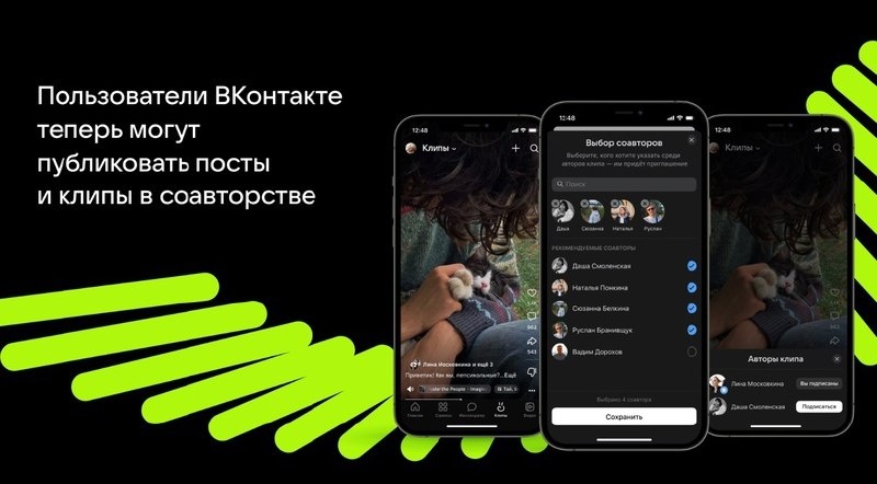 ВКонтакте представила соавторство в постах и клипах. Авторы, бренды и сообщества получили возможность создавать коллаборации, приглашая до четырёх соавторов.