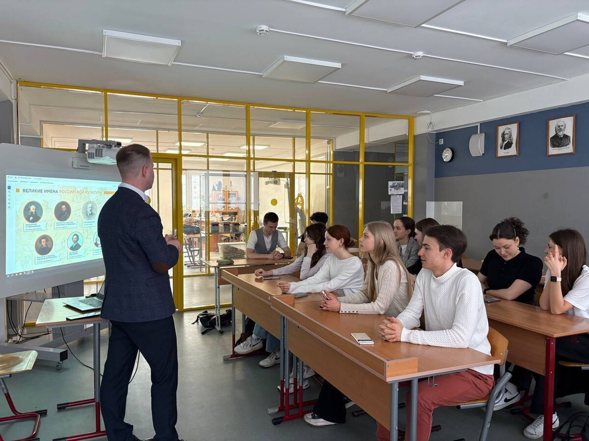 🎶 Разговоры о важном: «Служение творчеством. Зачем людям искусство? 185 лет со дня рождения П. И. Чайковского.» Сегодня традиционно неделя в нашей школе началась с увлекательного занятия в рамках проекта «Разговоры о важном». Ученики 11 «П» класса вместе с Сергеем Андреевичем обсудили такие важные темы, как искусство музыки и подробнее узнали про: 🤩Россия — страна с богатейшим культурным наследием; 🤩Творчество — естественная потребность человека, отличающая его от искусственного интеллекта; 🤩Искусство — язык диалога поколений, эпох и народов; 🤩П. И. Чайковский — великий русский композитор, внесший значительный вклад в формирование культурного облика России ее культурного кода. 🤩 В этом году исполняется 185 лет со дня рождения величайшего русского композитора Петра Ильича Чайковского. Без его музыки невозможно представить российское и мировое искусство. Произведения искусства — это результат творческого переосмысления действительности художником, писателем, музыкантом или