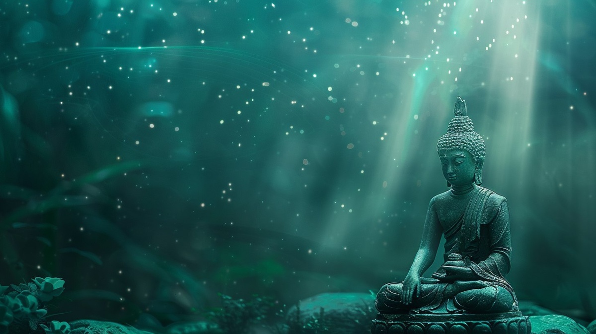 Создано на основе запроса: Peaceful background with deep teal green tone (#2c4b4c), soft and spiritual mood, light beam falling gently from the top right side, glowing dust particles in the air, a subtle halo glow on the right third (for placing Buddha statue), blurry sacred forest or abstract meditative scene, quiet atmosphere, leave the right side slightly brighter and softer for subject placement, cinematic soft focus --- Автоперевод: Мирный фон с глубоким зеленым тоном тила (#2C4B4C), мягким и духовным настроением, светло -лучом, мягко падающим с правой верхней стороны, светящиеся частицы пыли в воздухе, тонкое сияние ореола на правой треть (для размещения статуи Будды), размытый священный лес или абстрактная медитативная сцена, тихая атмосфера, оставьте правую сторону слегка яркой и подставной для комплекса для подчиненного, снимка, в тихой атмосфере, правая бока Круто вышло? 🤔 https://dzen.ru/id/65c0c65c86e4f837c27b24d7 #ИИ #AI #нейросеть #midjourney #art