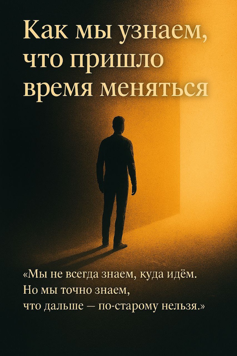 Как мы узнаём, что пришло время меняться Это не всегда громкий зов. Иногда — лишь лёгкий дискомфорт. Мы не можем сказать точно, что не так, но привычное больше не даёт покоя. Слова, которые раньше вдохновляли, становятся пустыми. Места, что казались домом, начинают душить. Люди, с которыми было легко, теперь утомляют. И ты сам — будто уже не тот, но ещё и не новый. Мы чувствуем, что изнутри начинает расти напряжение. Не разрушительное — а призывающее. Как будто внутри нас что-то шепчет: «Пора». Это не каприз и не бегство. Это внутренний рост, который больше не помещается в старую оболочку. И чем дольше мы оттягиваем, тем сильнее становится тревога, усталость, раздражение. Всё вокруг словно теряет цвет, и только одно ощущение становится отчётливым — нужно двигаться. Парадокс в том, что перемены не приходят извне. Они начинаются тогда, когда мы признаём: старое больше не соответствует. И только после этого мир начинает подстраиваться под наше движение. --- Мы не всегда знаем, куда