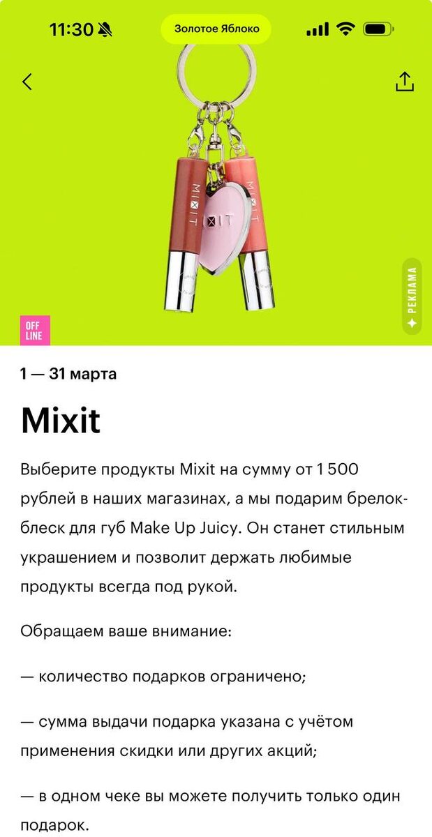 В Золотом Яблоке нашла классные акции 😻 На mixit акция НЕ действует в городах: Москвы (Apple Box в РЦ Ангара, ТРЦ Афимолл Сити, ТРЦ Океания) и Новосибирска (Apple Box в ТРЦ Галерея Новосибирск), Самары На Ligne St. Barth акция НЕ действует в городах: Екатеринбург (Универмаг Bolshoy), Челябинск, Красноярск, Саратов, Уфа, Самара, Нижнего Новгорода, Хабаровска, Новосибирска (Apple Box в ТРЦ Галерея), Казани (ТРЦ Казань Молл, ул. Пушкина, 2), Москвы (ТРК Европолис, ТЦ Неглинная Галерея, ТРЦ Авиапарк, ТЦ Саларис и Apple Box в ТРЦ Океания), Ростова-на-Дону, Краснодара, Санкт-Петербурга (ТРЦ Галерея, ТК Невский Центр), Екатеринбурга (ТЦ Пассаж), Иркутска