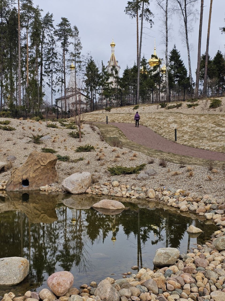 В Мытищах гулять негде, все застроили, а в городском парке уже тесно - пишут местные. А вот и не правда. В 20 минутах езды от центра есть новенький парк в поселке пансионата "Клязьминское водохранилище". Весной он стал ещё краше. Настоящая карельская природа и водопады в Мытищах. Сделали дорожки к ещё одному пруду, посадили новые кедры и сосны. Видно что вложено немало, все сделано очень аккуратно. Говорят финансировал сам Мантуров, как и строительство Храма Покрова Пресвятой Богородицы. На случай гостей уровня патриарха, в парке есть вертолетная площадка. Парковка и кофеек имеется у магазина Пятёрочка, ровно напротив входа в парк, который свободный и бесплатный. 📍Секретная локация мытищинской Карелии. Сорокинское шоссе, 9В Координаты: 55.994552, 37.674093 Что ещё посмотреть в тех краях? 📍Подводная лодка К-19 в деревне Никульское 📍Полузаброшенный замок экс солиста "Ласкового мая". 📍Фабрика и фирменный магазин Жостово 📍Ферма страусов, роскошная набережная, пейзажи как в Приб