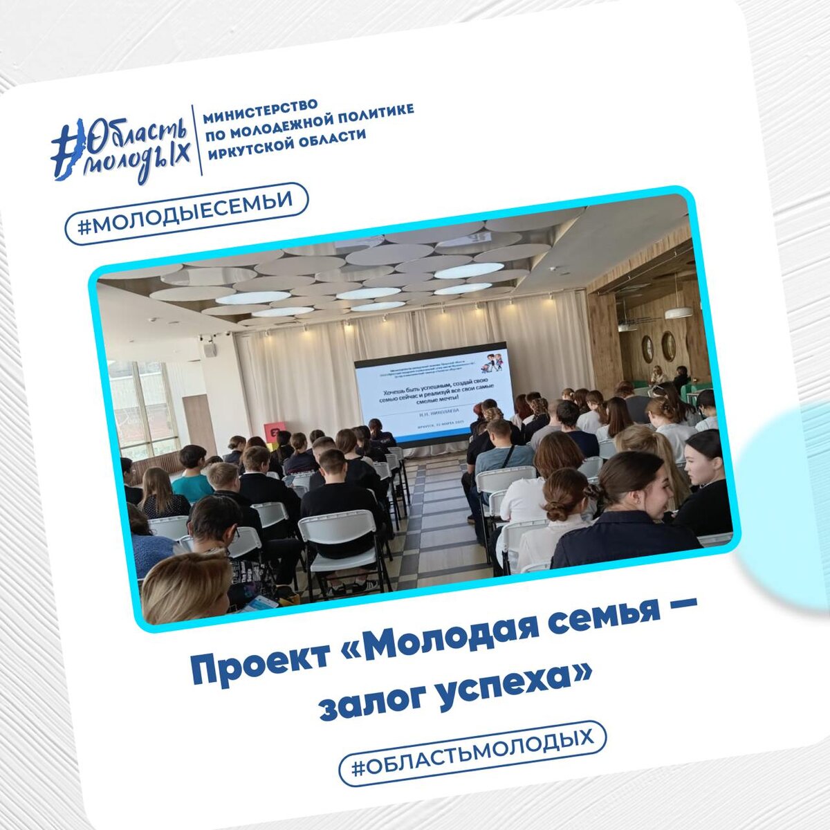 Молодая семья — залог успеха!🫂 Мы знаем, что зачастую возникают очень сложные вопросы, касающиеся молодых семей: начиная с этапа их создания и заканчивая мерами господдержки. ➡️Поэтому совсем недавно мы запустили крутой проект «Молодая семья — залог успеха», чтобы помочь вам разобраться в разных вопросах! В Доме молодежи уже состоялась первая встреча с Натальей Николаевой — кандидатом медицинских наук и практикующим психотерапевтом. Она поделилась ценными знаниями на мероприятии «Хочешь быть успешным, создай свою семью сейчас и реализуй все свои самые смелые мечты!».💙 Наталья ответила на важнейшие вопросы, такие как: 🤩Как создать семью для личностного роста? 🤩В каком возрасте лучше всего делать этот шаг? 🤩Почему материнство вдохновляет и раскрывает красоту? Следите за новостями и не пропустите следующие встречи в рамках проекта!🛎️ Проект организован министерством по молодежной политике Иркутской области совместно с Иркутским городским перинатальным центром.