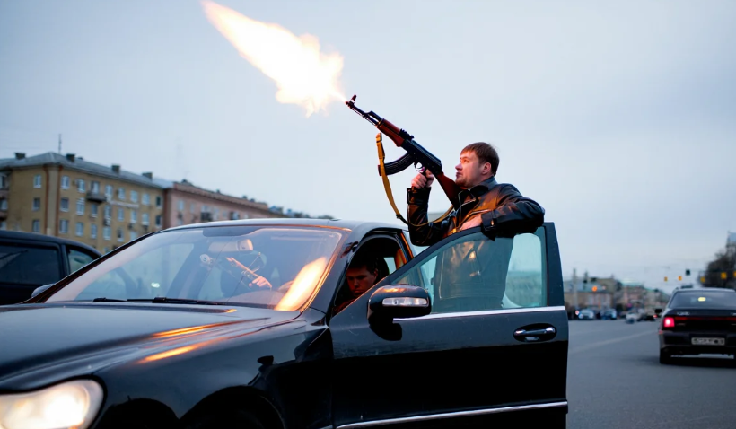 Русские мужики не побоялись и догнали товарища, который устроил дрифт с пальбой в Новосибирске и заставили раскаяться во всем.