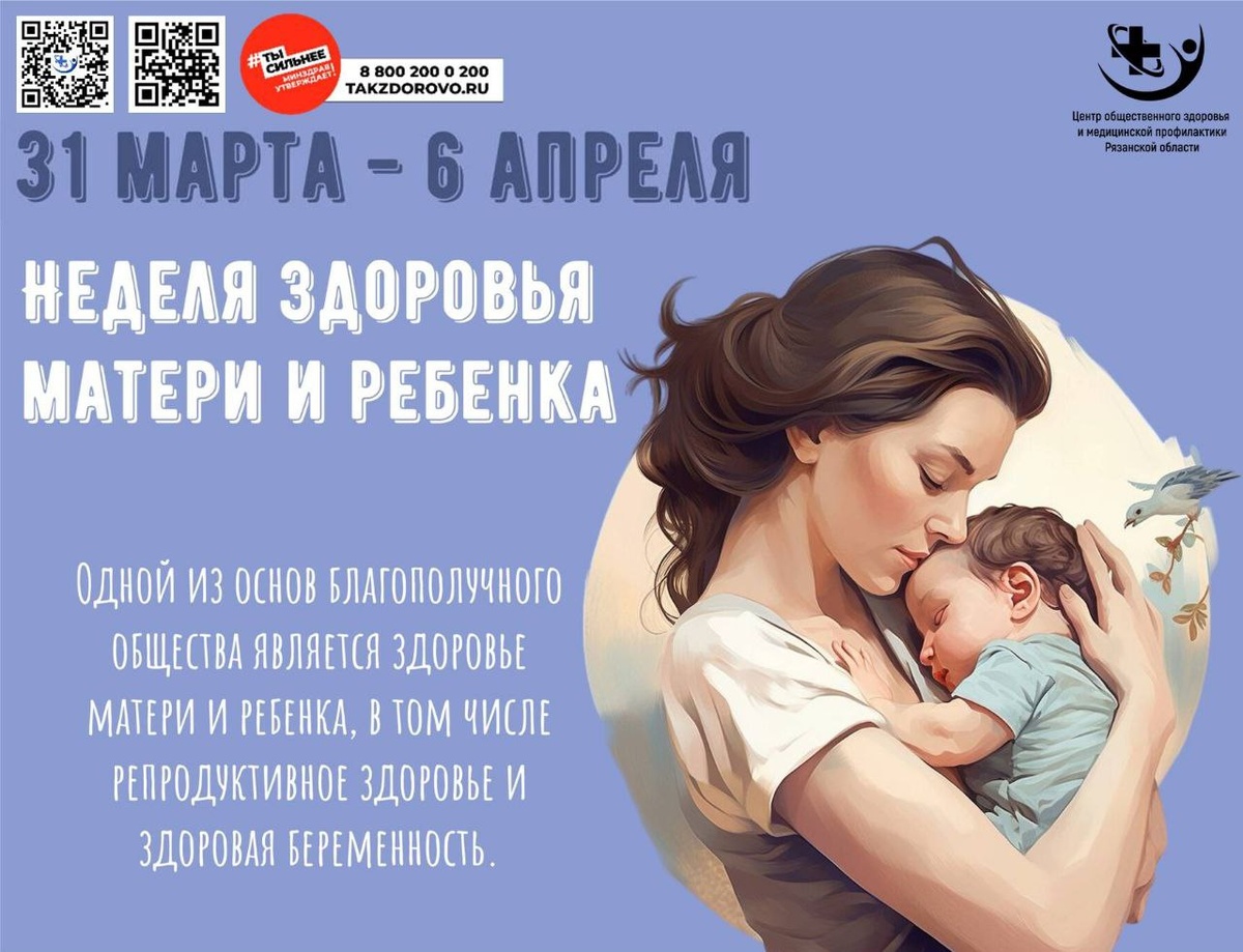 Неделя здоровья матери и ребенка стартует в России! 🌸👶 🗓️По инициативе Минздрава России с сегодняшнего дня проходит Неделя здоровья матери и ребенка, приуроченная к Дню неонатолога (5 апреля). 📌Это важное время, чтобы напомнить о ценности материнского и детского здоровья, роли качественного медицинского сопровождения и профессионализма врачей, особенно неонатологов, которые спасают самых маленьких пациентов. Здоровье детей начинается с заботы о маме! ❤ #НеделяЗдоровьяМатерииРебенка #ДеньНеонатолога #ЗдоровьеНации #здоровоебудущее #здоровоебудущее62 #ЗдороваяРязань