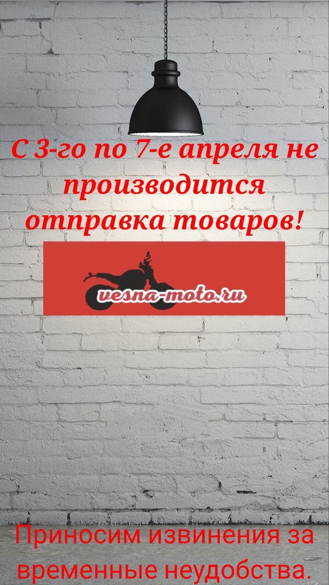 Уважаемые клиенты, информируем Вас, что с 3 апреля по 7 апреля включительно не будет производиться отправка заказов с сайта vesna-moto.ru , так как вся наша команда участвует в выставке "МотоВесна 2025". Спасибо за понимание!