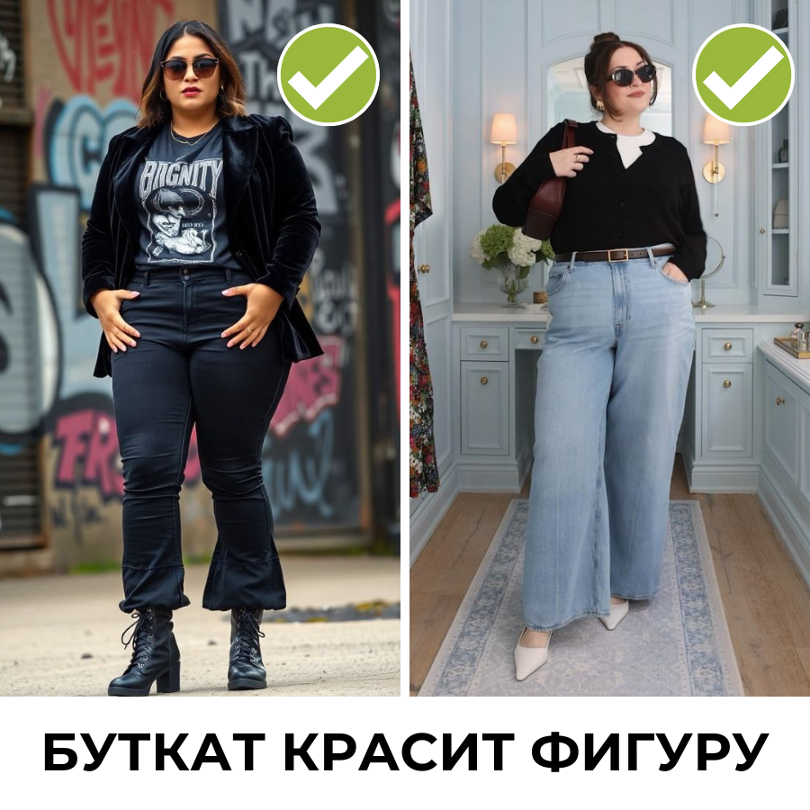 Всегда помню, что облегание подчеркивает фигуру и создает контраст с джинсами буткат, а свободный вариант добавляет легкости и комфорта.